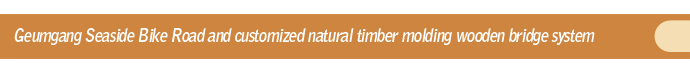 | Geumgang Seaside Bike Road and customized natural timber molding wooden bridge system-installation example |
